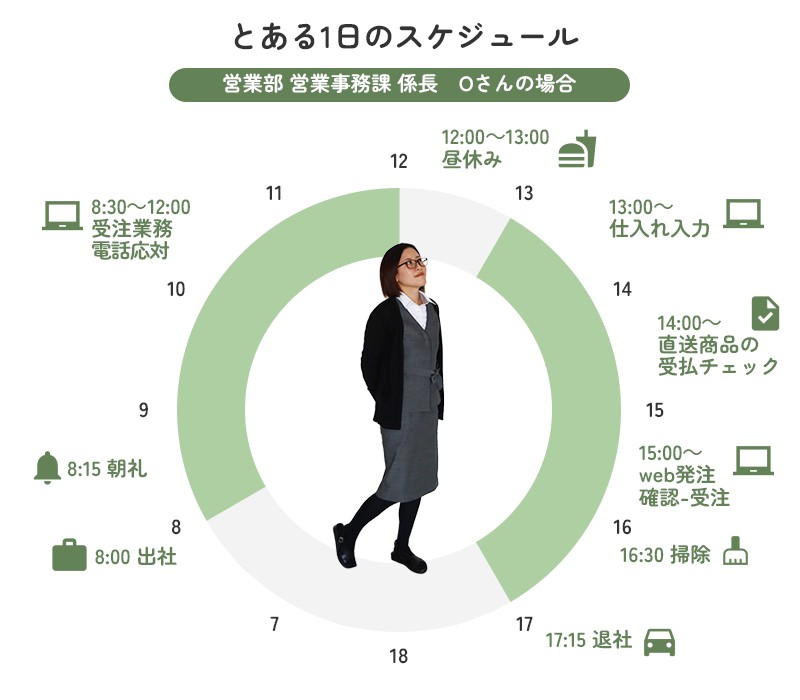 Oさんはロールモデルのような方です。いつもハキハキと電話応対をしており、お客様からの評価もピカイチとお褒めいただいている自慢の先輩です。各取引先の取引条件~商品・システム関連まで幅広い知見を持ち、業務の円滑化を進めています。また、真面目な仕事姿とは裏腹に、話をすると明るく楽しく、周りを和ませる、みんなの手本となるような方です。